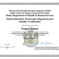 We take the time to work with our clients and there specific location on what type of system might be a good fit for their area. We have a good relationship with site evaluators that listen to what we have found in soil investigation or the lay out of the land that could aid them in their type of design to keep the cost down for our clients and give them the best quality outcome. We are certified in Maine to inspect septic systems and install them. Some of our staff has had extensive site evaluator soil evaluation and training in the laws in main governing the design and installation of the system. We try to be conservative with the work that needs to be done. If your tank is in good condition why replace it if the leach field is what's failing.